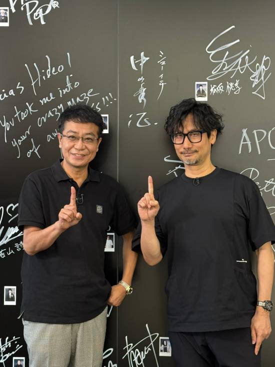 《死亡搁浅》制作人小岛秀夫今日晒出一组合影,日本国民级男演员中山秀征前往小岛工作室参观。岛哥哥发文称拿到了中山秀征的签名,并配上一堆emoji表情表达激动与感谢。